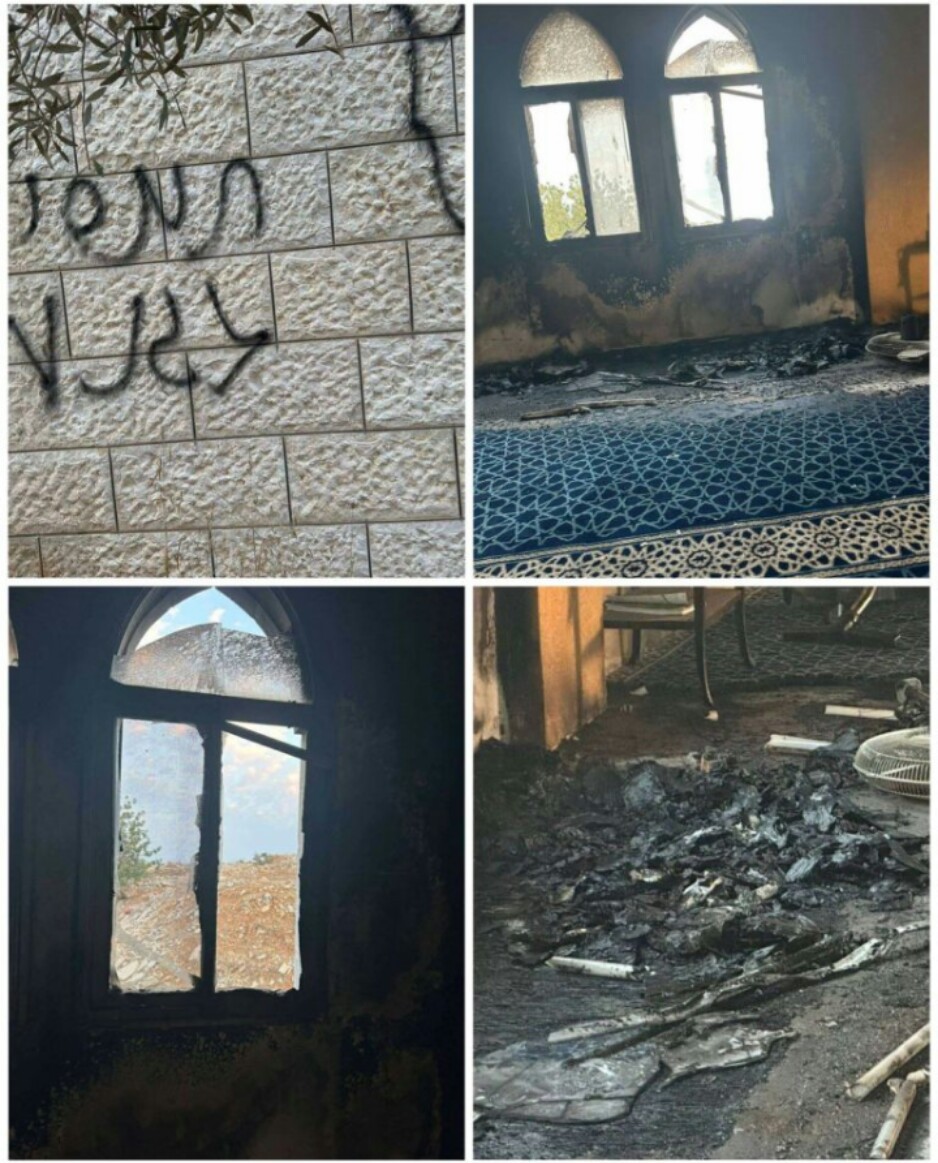 Mereka membakar sebagian bangunan masjid dan mencoret-coret dinding dengan slogan-slogan rasis berbahasa Ibrani. Warga setempat berhasil memadamkan api, namun sebagian ruang utama tempat salat mengalami kerusakan.