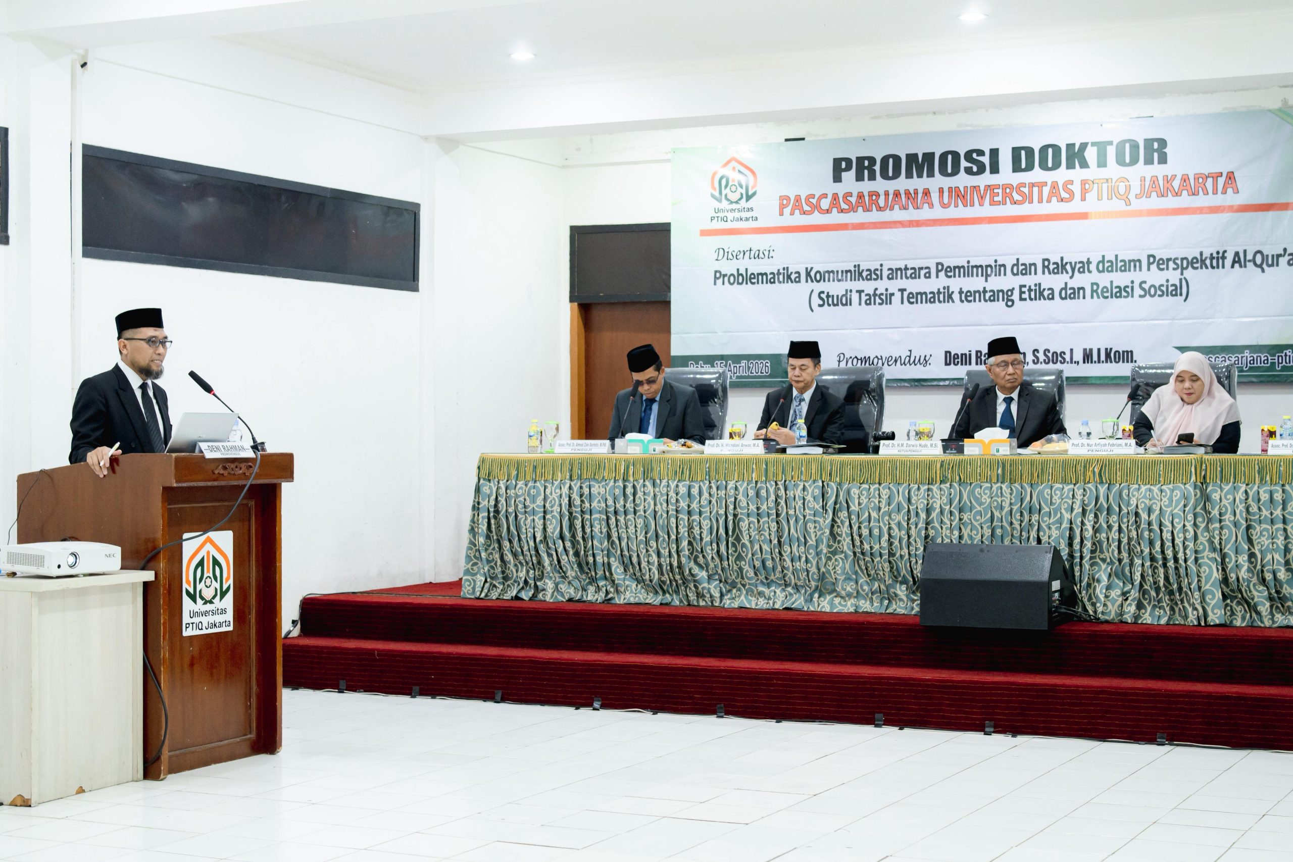 Jakarta – Ketua Program Studi (Kaprodi) Komunikasi dan Penyiaran Islam di STAI Al Fatah Bogor, Deni Rahman, berhasil meraih gelar doktor ke-401 di Universitas PTIQ Jakarta (Perguruan Tinggi Ilmu Al-Qur’an) setelah menjalani sidang terbuka disertasi pada Rabu (15/4).