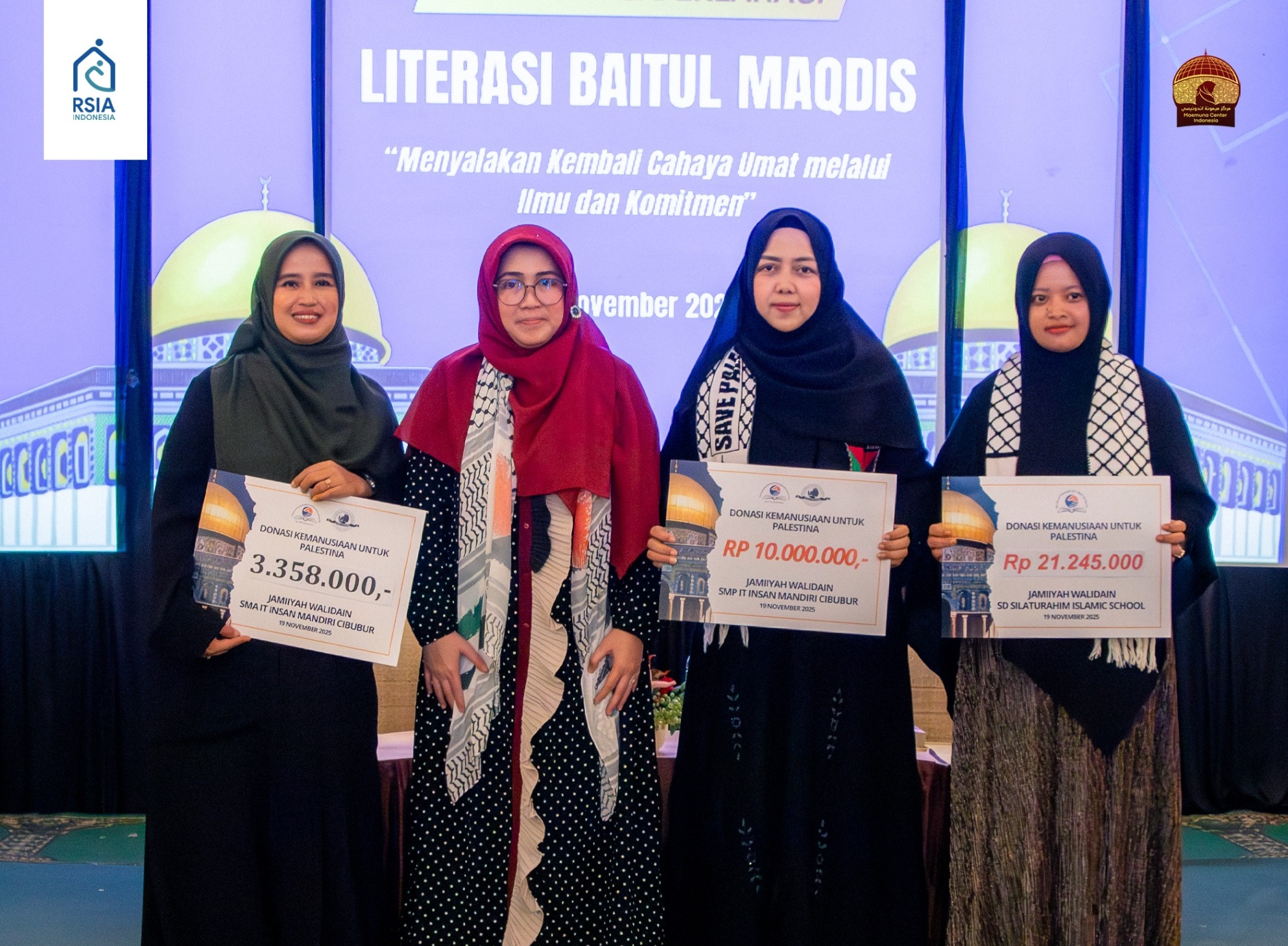 Donasi tersebut diserahkan dalam rangkaian acara Talkshow dan Deklarasi Literasi Baitul Maqdis, Rabu (19/11), yang menghadirkan Prof. Dr. Abdullah Al-Fattah El-Awaisi, Founder of Baitul Maqdis Studies di United Kingdom, sebagai pembicara utama.