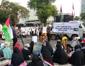 AWG yang merupakan anak lembaga dari wadah persatuan umat Jamaah Muslimin (Hizbullah) bekerja sama dengan Kedutaan Besar Palestina menggelar aksi tersebut.